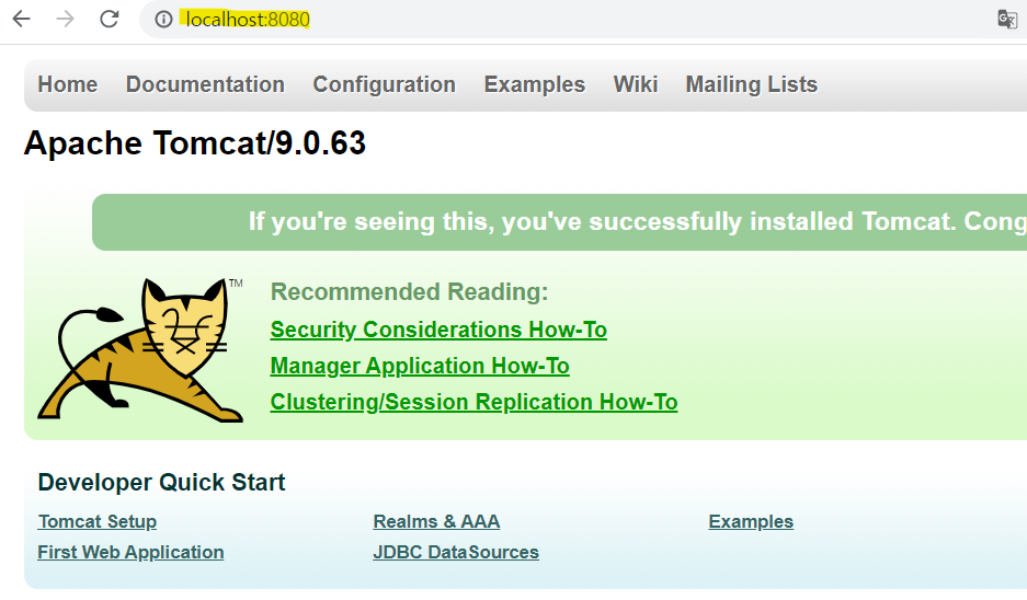 localhost:8080 들어가면 Tomcat 화면이 나오면 잘 된 것임.