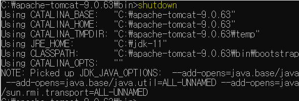 톰캣 종료하기 > shutdown